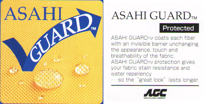 ASAHI GUARD protection gives your fabric stain resistance and water repellency